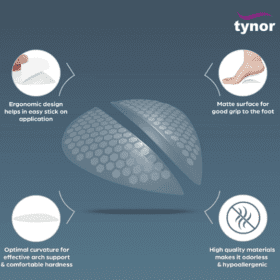 Medial Arch support inserts are designed to support & maintain the arch of the foot. It is designed to distribute the pressure on the foot evenly and naturally. Placed inside the shoe for effective results.