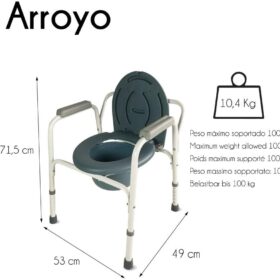 This adjustable commode chair is designed for comfort, safety, and durability. It features a wide seat, adjustable backrest, customizable height, armrests, and a lid for added comfort. The chair is equipped with non-slip feet for enhanced stability, making it ideal for elderly or mobility-impaired users. With a sturdy steel frame and a weight capacity of 100 kg, it ensures reliability. Manufactured by MOBICLINIC S.L., a trusted leader in clinical and hospital equipment since 1985, this chair offers a practical solution for bathroom use.