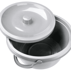 - *SPLASH PROOF DESIGN – The generously sized commode pail is easy to empty, with a convenient carry handle and pail cover to reduce splashes and spills.There is no gap between the pail and the frame, so it is more difficult to splash when moving and using.