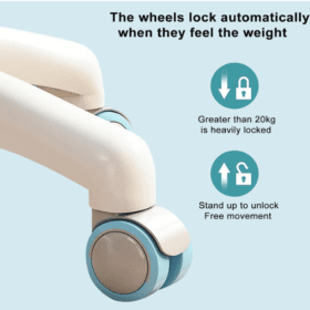 - 📜【Safe Sit-Locking Wheels】This kids desk chair with 360 degree rotating wheels provides convenience for movement,the chair uses gravity self-locking wheels, which can be fixed or moved according to needs, and can be easily switched. The star base supports stably, does not sway, weighs evenly. Improve the stability of children’s use of learning chairs, so they can be used with confidence.