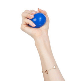 Finger Flexion: Hold the ball away from your palm using your thumb and another finger of your choice. Squeeze the ball, focusing on only pressing it with your finger and finger tip.