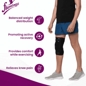 Material Descriptions: Made up of neoprene fabric. Bi-Axle hinges on collateral side. Neoprene padding at patella opening. Top and bottom Velcro straps with D – Ring. Elastic straps around the patella. Velcro hook and loop on neoprene.