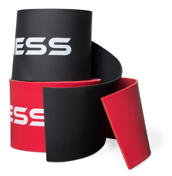 Floss Bands come in two sizes. The thicker red band (0.06”) is ideal for larger muscle groups and joints, while the thinner black band (0.05”) is better for smaller muscles and joints. Both bands are 7’ long and 2” wide. Floss Bands are portable, lightweight, and easy to toss in your gym bag. They’re sold as single units or as a pair.