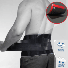 The Aero-tech neoprene advanced back support is firm-level support for sporting and rehabilitation use.