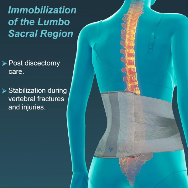 Providing moderate to firm support to the lumbar area without restricting movement, the lumbosacral support/brace eases pressure on mild disc herniation and bulging, as well as mild lumbago. Designed to reduce excessive and unwanted movement, this support encourages healing of injured tendons, ligaments, muscles and lumbar discs. The breathable and adjustable brace also maintains proper alignment of the lumbar spine.