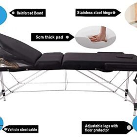 - STRONG SUPPORT: Precision crafted of premium-grade materials, this professional massage table features an aluminum frame and durable steel support cables, designed to accommodate a maximum weight capacity up to 250kg. The adjustable headrest features a premium composite support, resistant to bending and warping. The table legs feature secure, non-slip, non-marring feet, which prevent sliding during massage as well as provide floor protection.