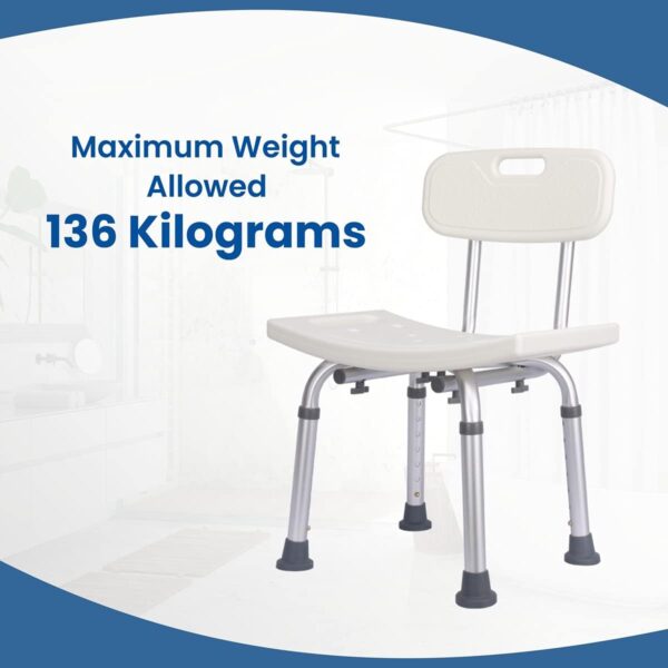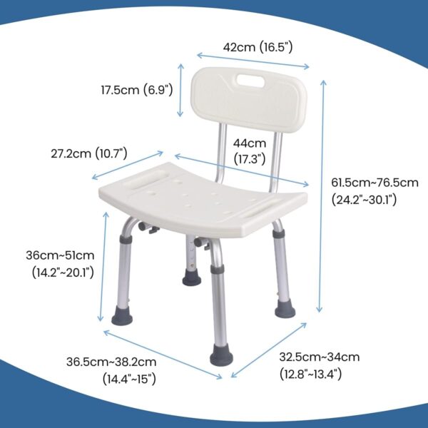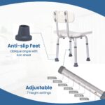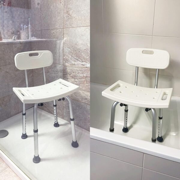 Versatile 2-in-1 Design: Easily converts from a shower chair with backrest to a bath stool by removing the backrest. Designed with suction tips on the legs and drainage holes to help reduce slippage and enhance security.