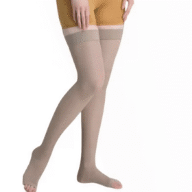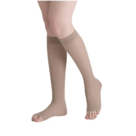 - With 20% spandex and 80% nylon for maximum elasticity and durability. Our medical compression stockings with open toes offer maximum strength and concealment, while the breathable material and reinforced elastic at the waist and crotch junction serve to prevent the problem of waist slip-down and simple crotch tearing.