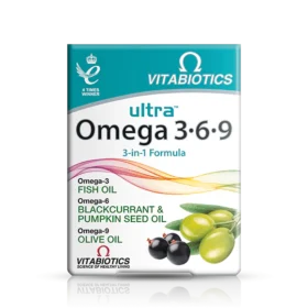 Ultra Omega-3 capsules provide a rich blend of essential fatty acids sourced from fish oil, blackcurrant seed oil, pumpkin seed oil, and olive oil, combined with vitamin E to help protect cells from oxidative stress and maintain the purity of the oils.