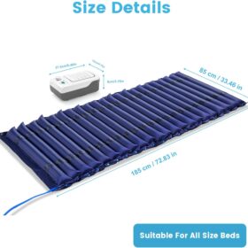 Supporting up to 300 lbs, this pressure relief pad evenly distributes weight to ease pressure points. Made from premium, nylon-coated material and featuring 22 air tubes, it is durable and easy to clean. Measuring 72.8″ x 33.5″ x 2.6″, the mattress fits most standard bed sizes with ease.