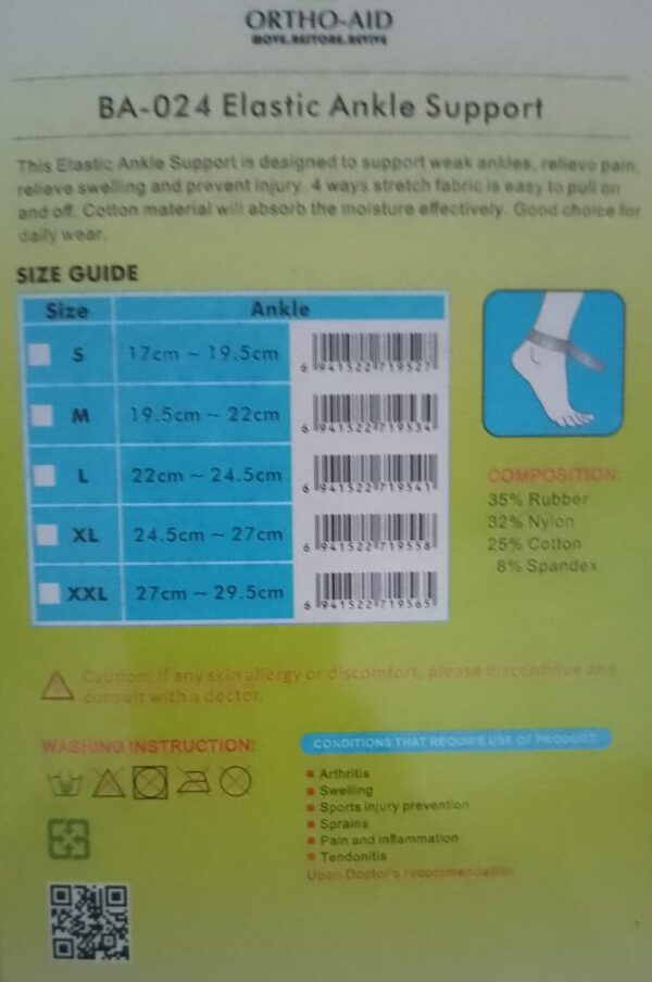 Ortho-Aid Elastic Ankle Support for Plantar Fasciitis, Arch Support, Foot & Ankle Swelling, Achilles Tendon, Joint Pain, Injury Recovery, Heel Spurs