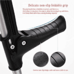 - Your crutches are equipped with many gadgets for your comfort and well-being. They are designed to be “pain-free crutches.” Padded crutches, with crutch pads in the cuff and straps of the crutches that provide comfort and alleviate the skin. The main features of your crutches include Medical Grade Aluminum Material, Foldable Feature, Adjustable Handles, Adjustable Cuff & Height Settings, Non-Slip Ergocap High Performance Tips, Shock absorbers