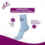 - Made of cotton fabric. Soft fold stitch at top. Elastomers grip at bottom.