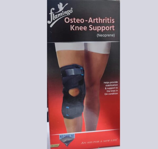 - Made up of neoprene material, Bi-Axle hinge on one side, mono filament straps, neoprene padding at knee, D- Ring, Velcro receptive fabric.
