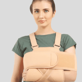 - Product Description Hold Elbow at 90o with Arm support and adjustable Neck newar tape strap, immobilise shoulder with foam padding strap around the Chest region. Common for left and right hand.