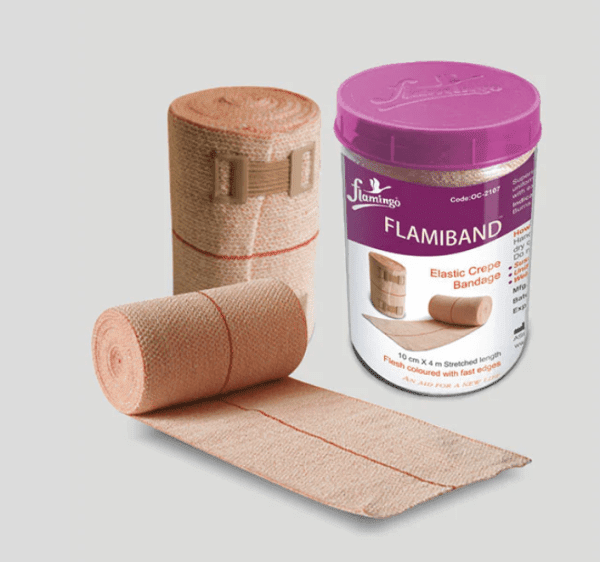 - Product Description: An elastic crepe bandage with non-fraying edges gives uniform compression and constant elasticity. Commonly used to treat muscle strain & sprain or post-amputation. Skin-friendly. Can be used as an Orthopedic casting tape.