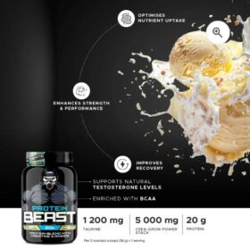 Beast Protein is a powerhouse all-in-one muscle-building supplement designed to help you build muscle, boost strength, and recover faster. This high-performance formula delivers a blend of fast and slow-digesting proteins, quality carbohydrates for energy replenishment, and creatine to enhance power and muscle performance. With added taurine, glycine, and digestive enzymes, Protein Beast supports muscle repair, cell hydration, and optimal nutrient absorption. Whether you need a post-workout recovery shake or extra fuel to meet your daily muscle-building goals, Protein Beast is your ultimate training partner.