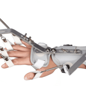 The Dicarre Dynamic Wrist-Hand-Finger Orthosis is uniquely designed with completely adjustable metal stays to control degree of wrist and finger extension, applying sound biomechanical principles and gentle dynamic forces in the treatment of joint contractures and joint stiffness. The corrective force can be adjusted by changing the length of the finger control unit with butterfly screw. This dynamic brace is universal in size, fits either hand.