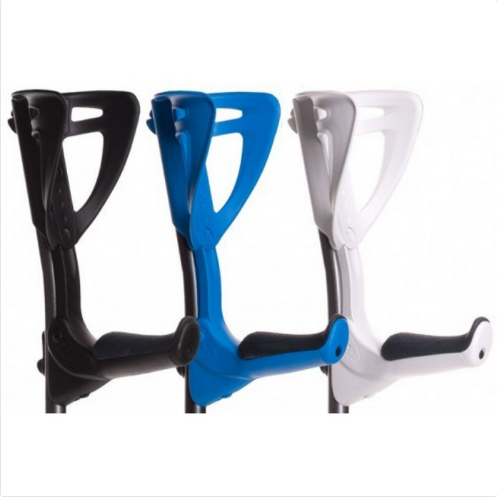 Ergonomic design: The crutch adapts to the user’s body, not the other way around. This includes an adjustable cuff height to fit the user’s forearm and comfortable, double-layered grips.