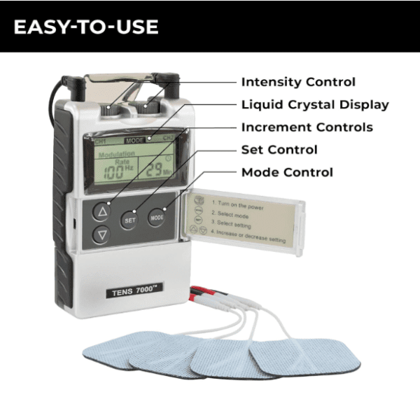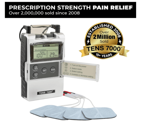 • Professional Strength TENS Unit… The TENS 7000 TENS unit provides TENS therapy and is a muscle stimulator, nerve stimulator, and leader in sciatica pain relief devices. TENS Machine controls four(4) TENS unit pads (electrodes) for targeted pain relief