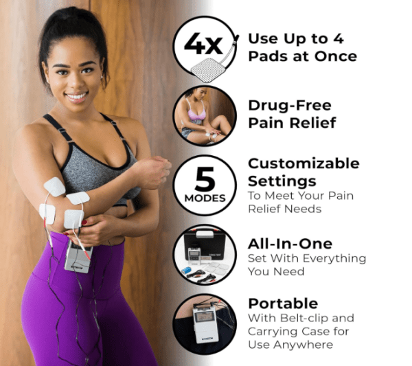 • Get Immediate Pain Relief… TENS machine comes with multiple TENS therapy modes that will provide instant muscle pain relief. An electrotherapy machine with everything needed for TENS therapy, a class leader in electric massagers for muscles