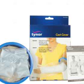 - Tynor Cast cover is made from a durable, transparent PVC fabric. It covers the limb when applied and the sealing is done with an expandable hole drilled into a latex diaphragm which is held in place with a rigid plastic ring.