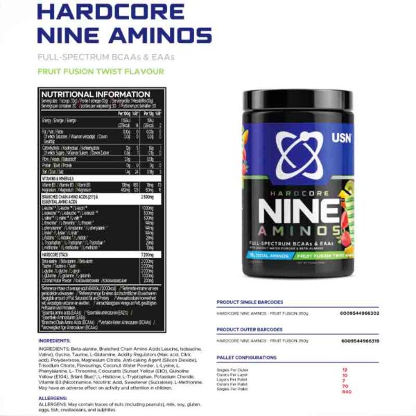USN Hardcore All 9 Amino BCAA & EAA Electrolytes Drink – Tiger’s Blood/Fruit Fusion Twist, 390g